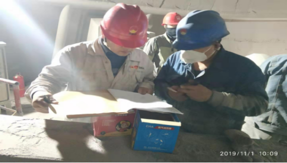 一、成品裝置長(cháng)黃勃強帶領(lǐng)維修工對均化庫底空氣斜槽技改,認真辦理受限空間作業(yè)票證。指導維修人員計算材料,核對圖紙,然后利用簡(jiǎn)單的工具就地進(jìn)行比劃!