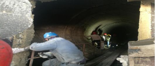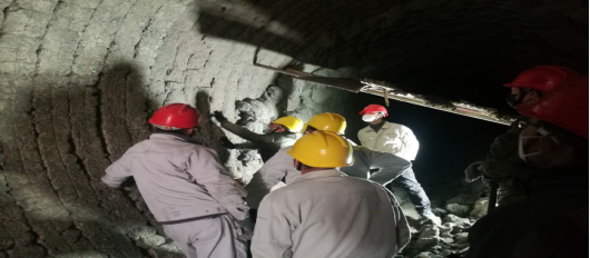 窯磚緊固。加塞,在轟鳴的風(fēng)鎬聲中,夾雜著(zhù)交替起落的敲擊聲,工友們,正頂著(zhù)滿(mǎn)面的塵灰完成作業(yè)。