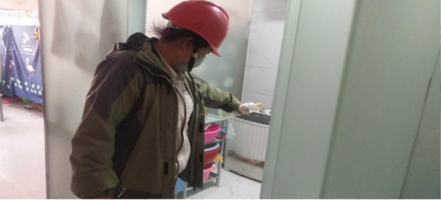 擦拭操作臺、門(mén)把手,工作的有條不紊。