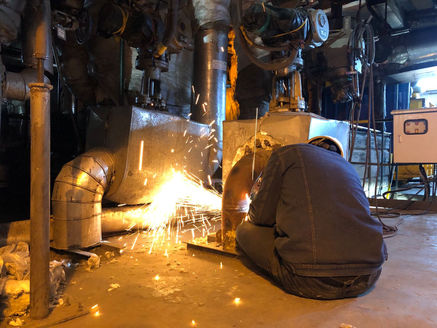 4月8日隨著(zhù)1#汽輪機組停運1#鍋爐熄火后,熱電一期系統緊張的檢修工作正式開(kāi)始。1#機高加水側彎頭需重新打磨補焊,夾層不但很悶熱,而且空間小,打磨補焊及其不容易,檢修人員變換著(zhù)各種憋屈動(dòng)作進(jìn)行作業(yè),等他們補焊結束后,已經(jīng)直不起腰,靠在欄桿邊稍作休息之后又投入到其他檢修工作中。