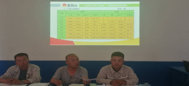 生料裝置、成品裝置、電儀裝置和質(zhì)檢科依次做了總結報告,客觀(guān)認真全面的總結了本單位2020年上半年的主要工作和成績(jì),對于工作中存在的不足進(jìn)行了深刻的剖析,對于下半年工作進(jìn)行了規劃和展望,同時(shí)對于公司發(fā)展積極提出自己的想法和建議。