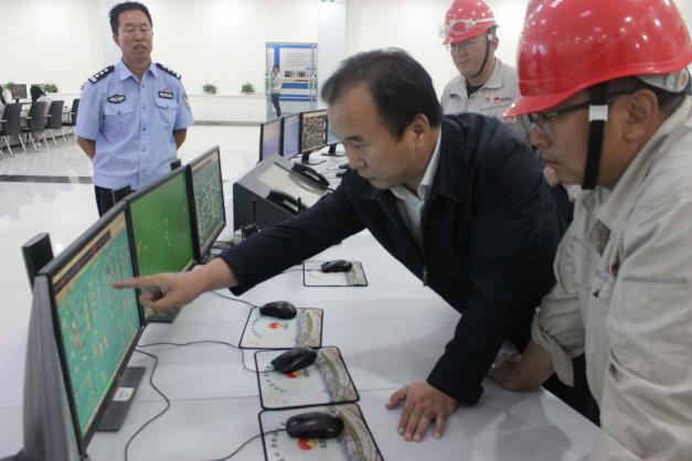 劉市長(cháng)一行來(lái)到化工中控室,詳細詢(xún)問(wèn)工作人員值班、中控臺控制操作、巡檢等情況。集團公司副總裁、總經(jīng)理喬冠榮就公司生產(chǎn)經(jīng)營(yíng)、安全環(huán)保、隱患排查等方面工作做了詳細匯報,并就劉市長(cháng)提出的相關(guān)問(wèn)題一一作了解答。