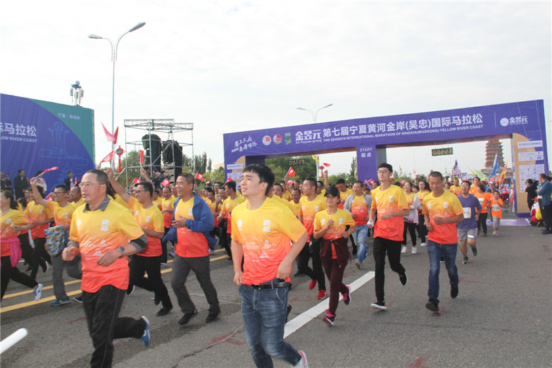 2018金昱元第七屆寧夏黃河金岸(吳忠)國際馬拉松在黃河奧林匹克公園開(kāi)跑。金昱元與寧馬在2017年首次進(jìn)行馬拉松賽事合作就建立了良好的合作基礎與友誼。2018年,金昱元再次攜手寧馬,成為本屆寧馬賽事的總冠名贊助商。