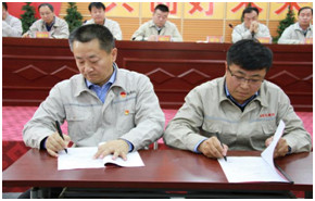 為了進(jìn)一步明確權責,強化各級管理人員的責任意識,提高履職能力,會(huì )上,集團公司各級主管領(lǐng)導簽訂了《2019年經(jīng)營(yíng)管理目標責任書(shū)》和《2019年安全環(huán)保目標責任書(shū)》。