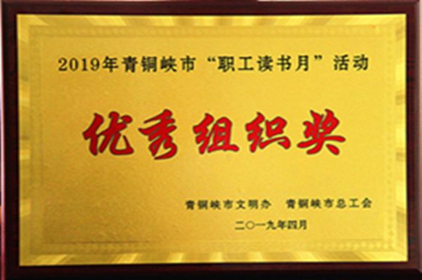 集團公司工會(huì )取得優(yōu)異成績(jì),榮獲2019年青銅峽市“職工讀書(shū)月”活動(dòng)優(yōu)秀組織獎。