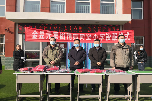 為關(guān)心下一代,助力農村學(xué)生,弘揚奉獻精神,2021年12月30日和2022年1月4日,寧夏金昱元化工集團股份有限公司前往固原市原州區寨科鄉各小學(xué)、學(xué)前班,青銅峽市同進(jìn)小學(xué)、學(xué)前班及廣武中心小學(xué),分別舉行了校服捐贈活動(dòng)儀式,在寒冷的冬日,為孩子們送上了融融暖意。