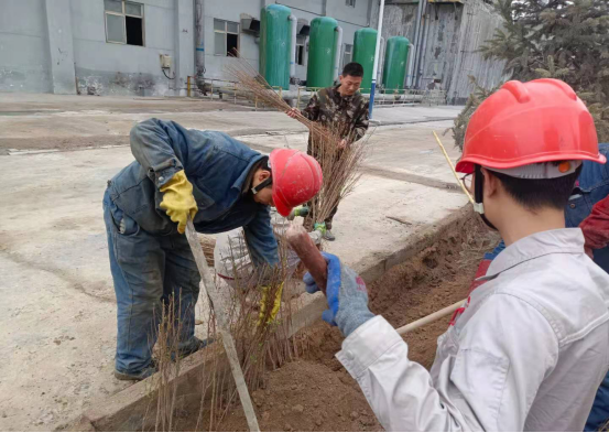 9日上午9時(shí)許,隨著(zhù)一輛載有新樹(shù)苗的卡車(chē)駛入廠(chǎng)區綠化指定區域,參加義務(wù)植樹(shù)的人員早就有些按耐不住,在植樹(shù)地點(diǎn)壓濾樓東側,他們卸載,擺放,掩埋……不到1個(gè)小時(shí)的,大家把需要綠化的小榆樹(shù)苗、楊柳樹(shù)苗全部卸載,配發(fā)到位。